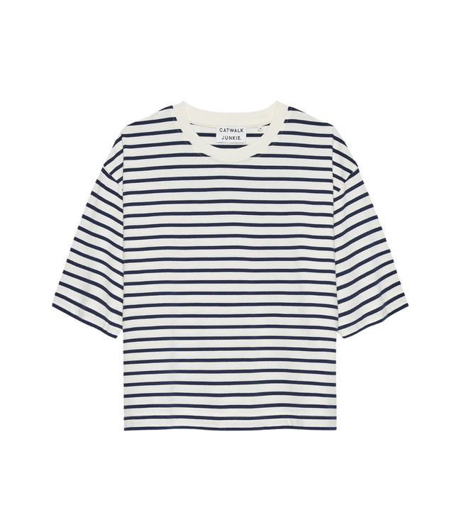 Catwalk Junkie Loose Fit Striped T-Shirt - Navy Blazer
