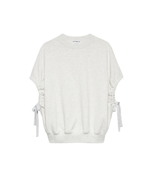 Catwalk Junkie Short Sleeve Strap Sweater - Light Grey Melange