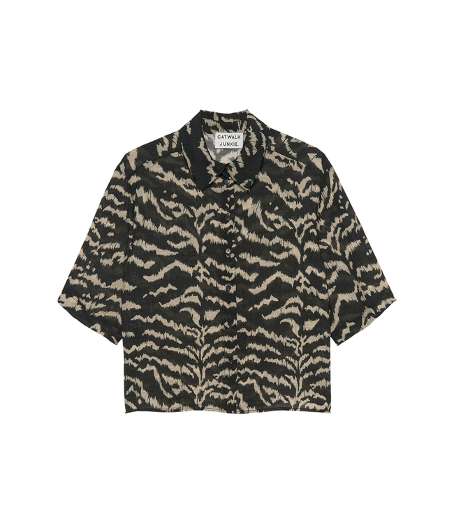 Catwalk Junkie Tiger Short Sleeve Blouse - Black